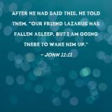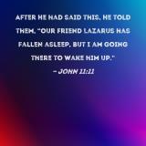 After He had said this, He told them, "Our friend Lazarus has fallen asleep, but I am going there to wake him up."