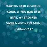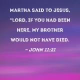 Martha said to Jesus, "Lord, if You had been here, my brother would not have died.