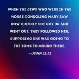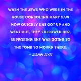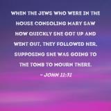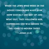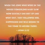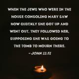 When the Jews who were in the house consoling Mary saw how quickly she got up and went out, they followed her, supposing she was going to the tomb to mourn there.