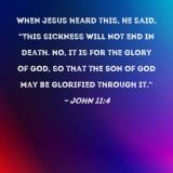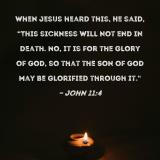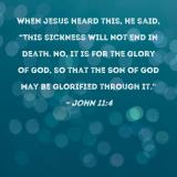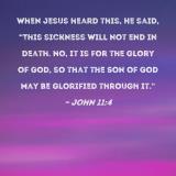 When Jesus heard this, He said, "This sickness will not end in death. No, it is for the glory of God, so that the Son of God may be glorified through it."