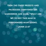 Then the chief priests and Pharisees convened the Sanhedrin and said, "What are we to do? This man is performing many signs.