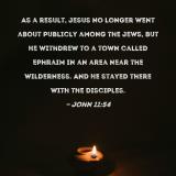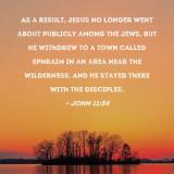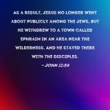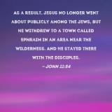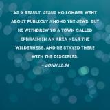 As a result, Jesus no longer went about publicly among the Jews, but He withdrew to a town called Ephraim in an area near the wilderness. And He stayed there with the disciples.