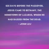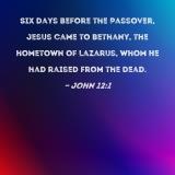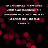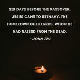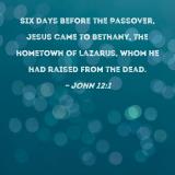 Six days before the Passover, Jesus came to Bethany, the hometown of Lazarus, whom He had raised from the dead.