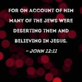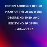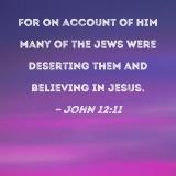 for on account of him many of the Jews were deserting them and believing in Jesus.