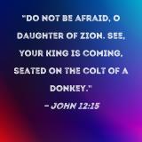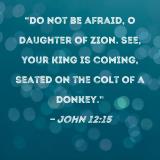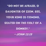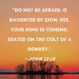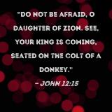 "Do not be afraid, O Daughter of Zion. See, your King is coming, seated on the colt of a donkey."