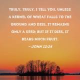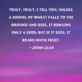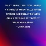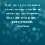 Truly, truly, I tell you, unless a kernel of wheat falls to the ground and dies, it remains only a seed; but if it dies, it bears much fruit.