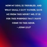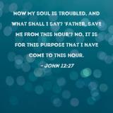 Now My soul is troubled, and what shall I say? 'Father, save Me from this hour'? No, it is for this purpose that I have come to this hour.