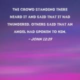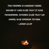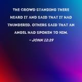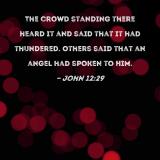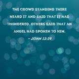 The crowd standing there heard it and said that it had thundered. Others said that an angel had spoken to Him.