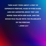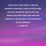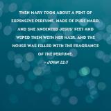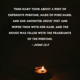 Then Mary took about a pint of expensive perfume, made of pure nard, and she anointed Jesus' feet and wiped them with her hair. And the house was filled with the fragrance of the perfume.