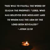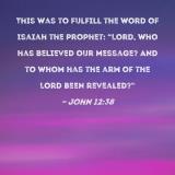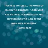 This was to fulfill the word of Isaiah the prophet: "Lord, who has believed our message? And to whom has the arm of the Lord been revealed?"