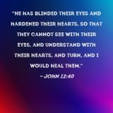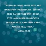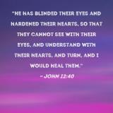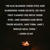 "He has blinded their eyes and hardened their hearts, so that they cannot see with their eyes, and understand with their hearts, and turn, and I would heal them."
