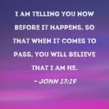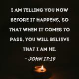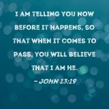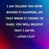 I am telling you now before it happens, so that when it comes to pass, you will believe that I am He.