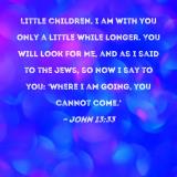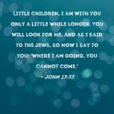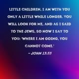 Little children, I am with you only a little while longer. You will look for Me, and as I said to the Jews, so now I say to you: 'Where I am going, you cannot come.'