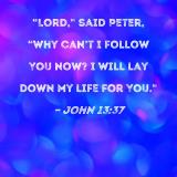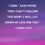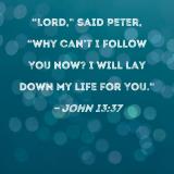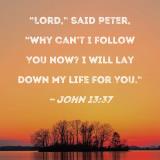 "Lord," said Peter, "why can't I follow You now? I will lay down my life for You."