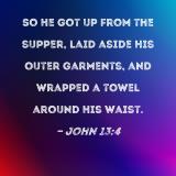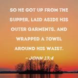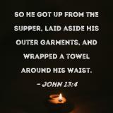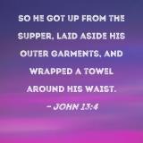 So He got up from the supper, laid aside His outer garments, and wrapped a towel around His waist.
