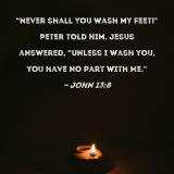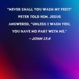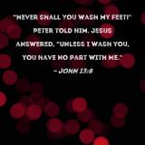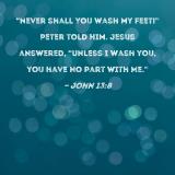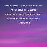 "Never shall You wash my feet!" Peter told Him. Jesus answered, "Unless I wash you, you have no part with Me."