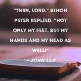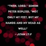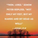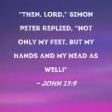 "Then, Lord," Simon Peter replied, "not only my feet, but my hands and my head as well!"