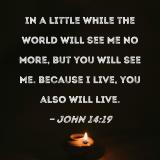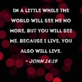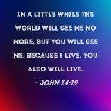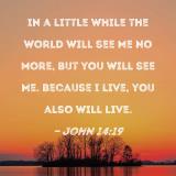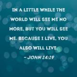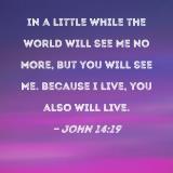 In a little while the world will see Me no more, but you will see Me. Because I live, you also will live.
