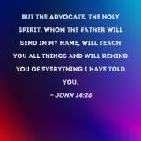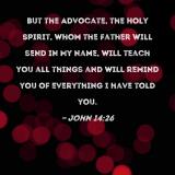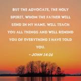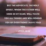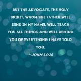 But the Advocate, the Holy Spirit, whom the Father will send in My name, will teach you all things and will remind you of everything I have told you.