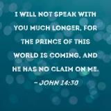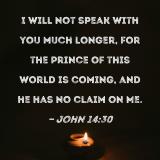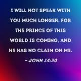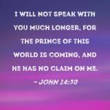 I will not speak with you much longer, for the prince of this world is coming, and he has no claim on Me.