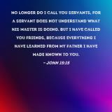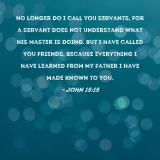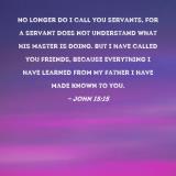 No longer do I call you servants, for a servant does not understand what his master is doing. But I have called you friends, because everything I have learned from My Father I have made known to you.