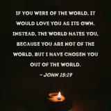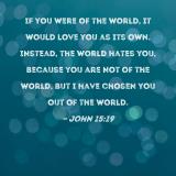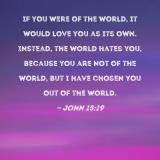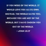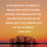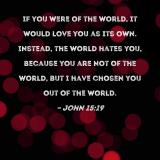 If you were of the world, it would love you as its own. Instead, the world hates you, because you are not of the world, but I have chosen you out of the world.