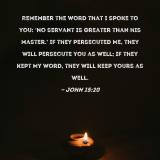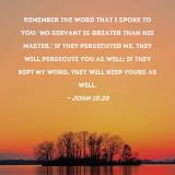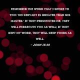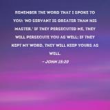 Remember the word that I spoke to you: 'No servant is greater than his master.' If they persecuted Me, they will persecute you as well; if they kept My word, they will keep yours as well.