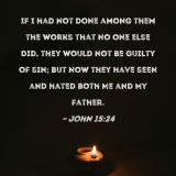 If I had not done among them the works that no one else did, they would not be guilty of sin; but now they have seen and hated both Me and My Father.
