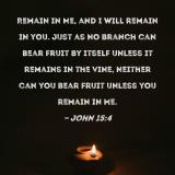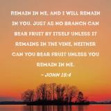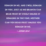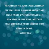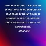 Remain in Me, and I will remain in you. Just as no branch can bear fruit by itself unless it remains in the vine, neither can you bear fruit unless you remain in Me.