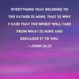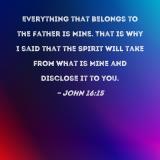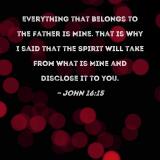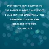 Everything that belongs to the Father is Mine. That is why I said that the Spirit will take from what is Mine and disclose it to you.