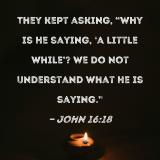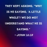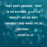 They kept asking, "Why is He saying, 'a little while'? We do not understand what He is saying."