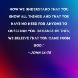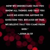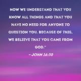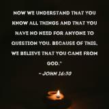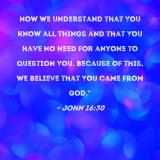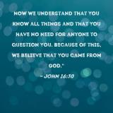 Now we understand that You know all things and that You have no need for anyone to question You. Because of this, we believe that You came from God."