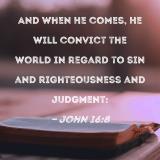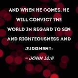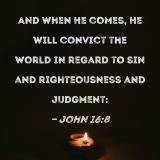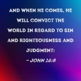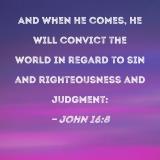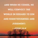 And when He comes, He will convict the world in regard to sin and righteousness and judgment:
