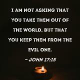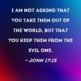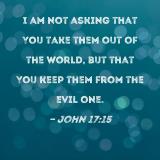 I am not asking that You take them out of the world, but that You keep them from the evil one.