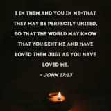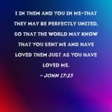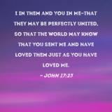 I in them and You in Me--that they may be perfectly united, so that the world may know that You sent Me and have loved them just as You have loved Me.