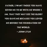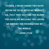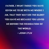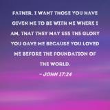 Father, I want those You have given Me to be with Me where I am, that they may see the glory You gave Me because You loved Me before the foundation of the world.