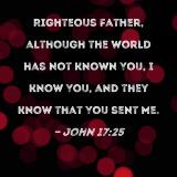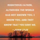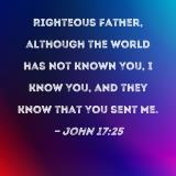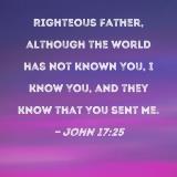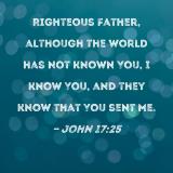 Righteous Father, although the world has not known You, I know You, and they know that You sent Me.