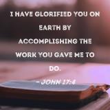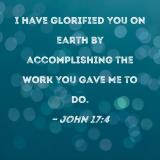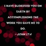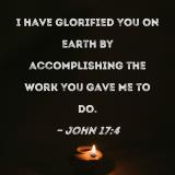 I have glorified You on earth by accomplishing the work You gave Me to do.