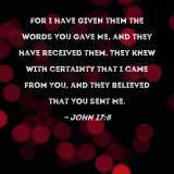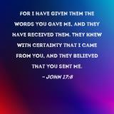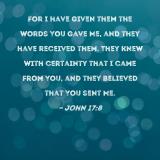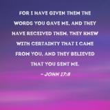 For I have given them the words You gave Me, and they have received them. They knew with certainty that I came from You, and they believed that You sent Me.