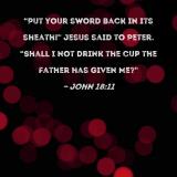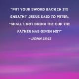 "Put your sword back in its sheath!" Jesus said to Peter. "Shall I not drink the cup the Father has given Me?"