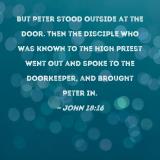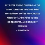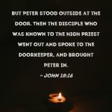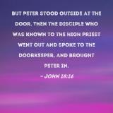But Peter stood outside at the door. Then the disciple who was known to the high priest went out and spoke to the doorkeeper, and brought Peter in.