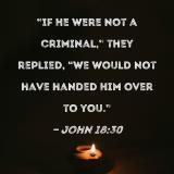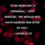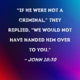 "If He were not a criminal," they replied, "we would not have handed Him over to you."