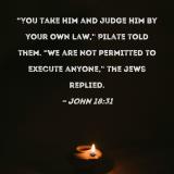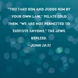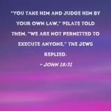 "You take Him and judge Him by your own law," Pilate told them. "We are not permitted to execute anyone," the Jews replied.