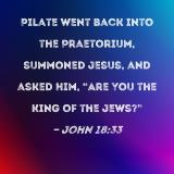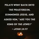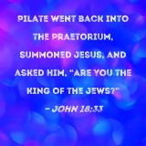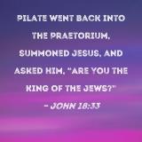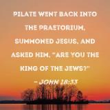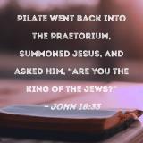 Pilate went back into the Praetorium, summoned Jesus, and asked Him, "Are You the King of the Jews?"