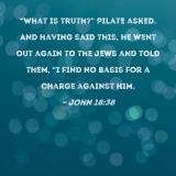 "What is truth?" Pilate asked. And having said this, he went out again to the Jews and told them, "I find no basis for a charge against Him.