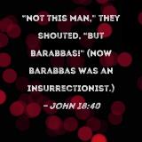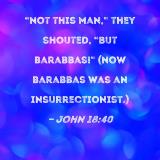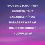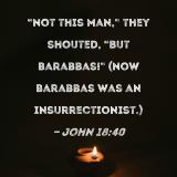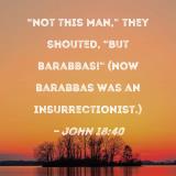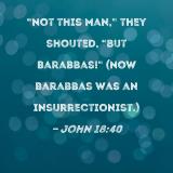 "Not this man," they shouted, "but Barabbas!" (Now Barabbas was an insurrectionist.)