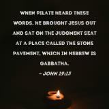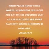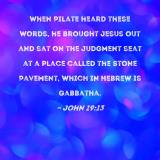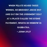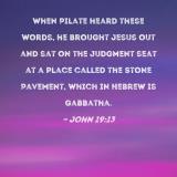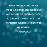 When Pilate heard these words, he brought Jesus out and sat on the judgment seat at a place called the Stone Pavement, which in Hebrew is Gabbatha.