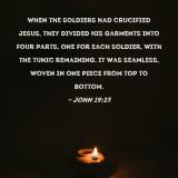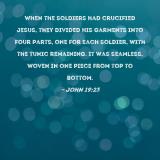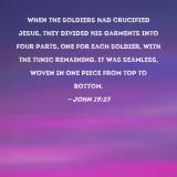 When the soldiers had crucified Jesus, they divided His garments into four parts, one for each soldier, with the tunic remaining. It was seamless, woven in one piece from top to bottom.