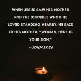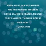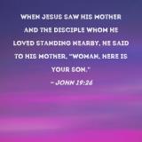 When Jesus saw His mother and the disciple whom He loved standing nearby, He said to His mother, "Woman, here is your son."