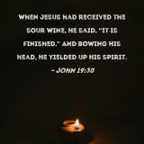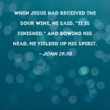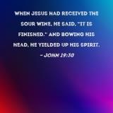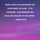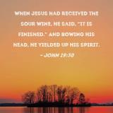 When Jesus had received the sour wine, He said, "It is finished." And bowing His head, He yielded up His spirit.